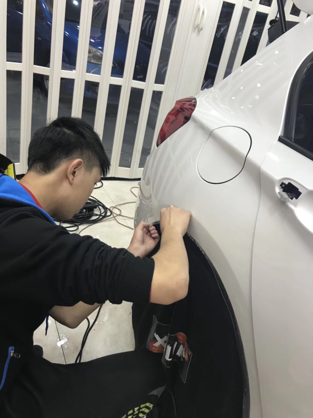 目前市面上保护膜的贴法主要分两种,一种是专车专用,优点是省料、节约时间、感觉专业、对于新手来说风险小。缺点……尤其是白色车,不建议贴专车专用。另一种是手裁,优点是技术好的师傅能做到全车无逢,能包边的地方绝对不马虎,施工完以后不靠近仔细看绝对看不出贴了膜。对于讲究品质的客户(或者有强迫症的客户)来说,专车专用绝对不会满意,唯有手裁才是完美。但是手裁贴膜对于技师的要求又非常高。9图只是随手一拍。好车好膜好手艺!